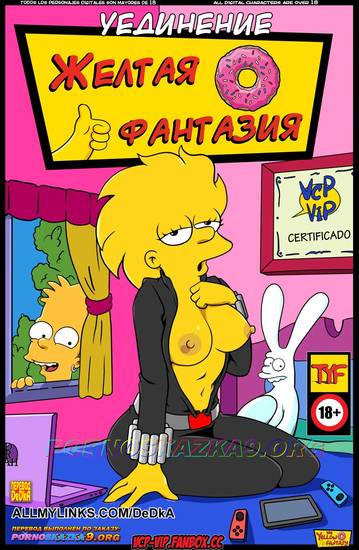 Порно комикс Симпсоны. «Уединение.» Мардж обеспокоена тем, что Лиза никуда не выходит, у нее нет друзей, она почти не ест, почти не спит, в ее жизни есть только учеба и спальня, а она уже взрослая девушка и ее должно интересовать то, что интересует девушек ее возраста. Решив узнать в чем дело, Мардж просит Гомера поговорить с Лизой и выяснить, что происходит с Лизой…